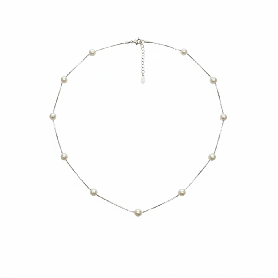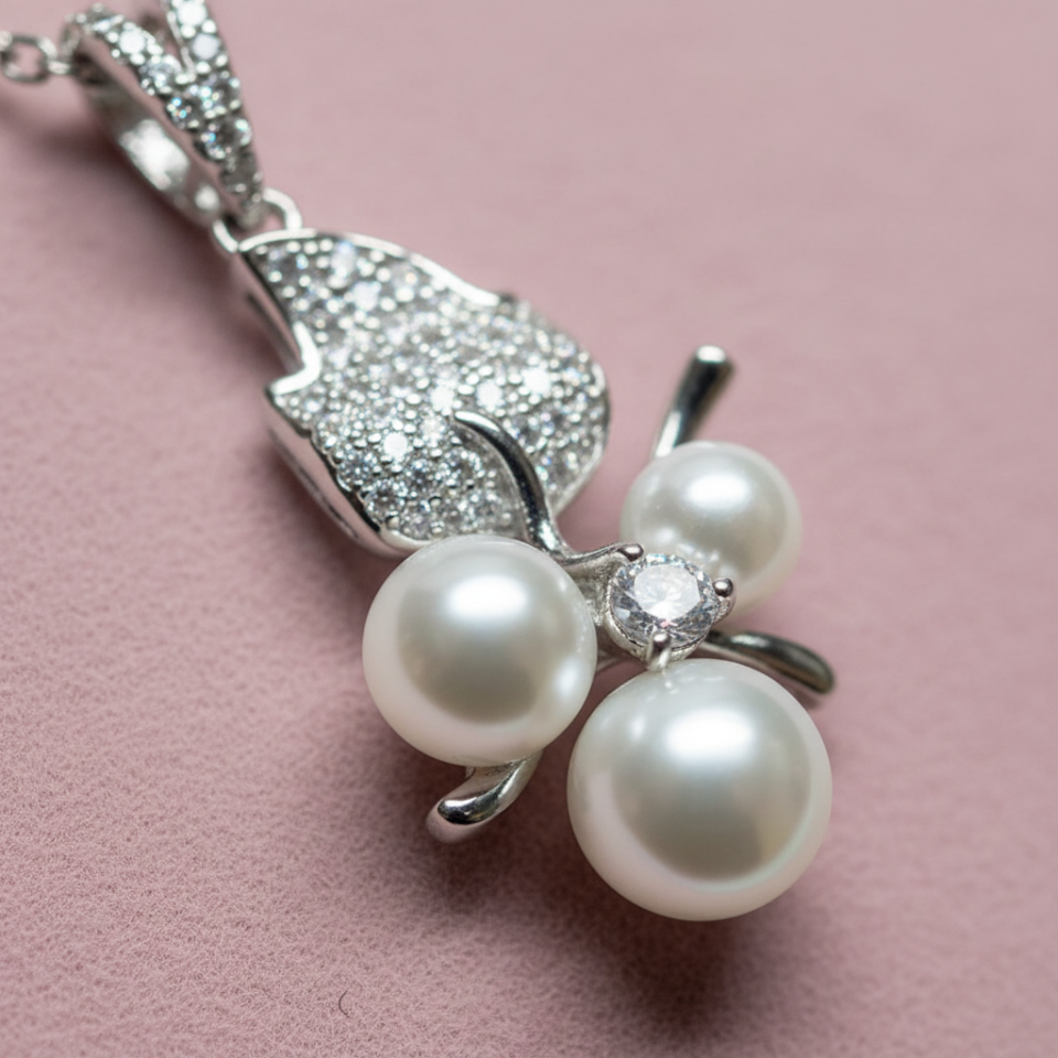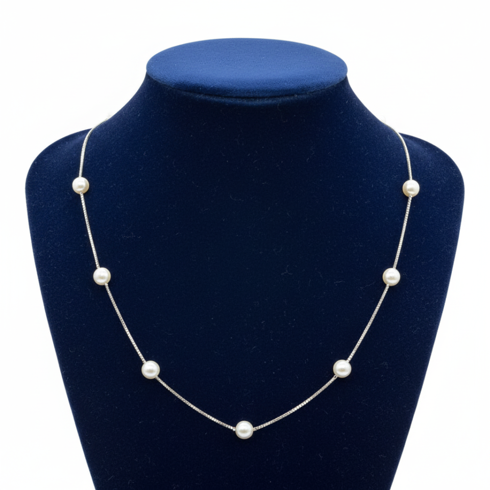92.5 Silver Rhodium Plated Triple Pearl Necklace | With Certificate of Purity & Hallmark
