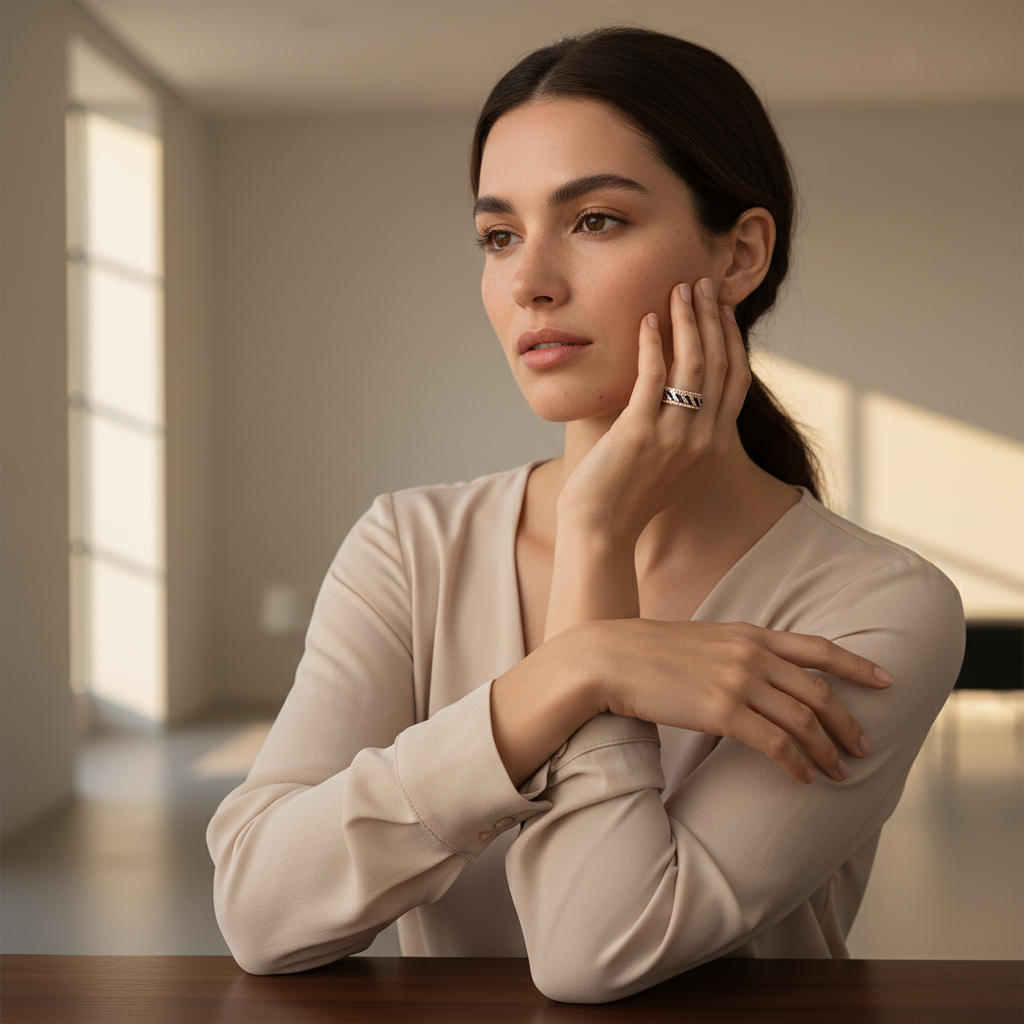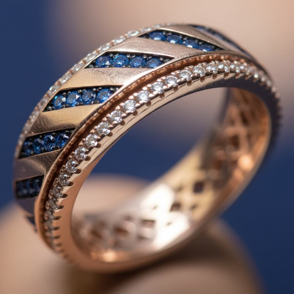 Elevate your everyday with this captivating rose gold finish kinetic ring, a truly unique engagement ring alternative for women. Featuring a mesmerizing spinner band studded with sparkling AAA+ zirconia and vibrant blue stones, this premium women’s ring exudes ‘Old Money’ sophistication with a hint of ’90s flair. Perfect for ‘9-5’ wear or as an unforgettable gifting choice, it’s designed to make you feel radiant and confident. Crafted from hypoallergenic, lead-free silver with a gorgeous rose gold finish, it offers both style and comfort. Discover the ultimate stackable ring for women that truly reflects your individual elegance.